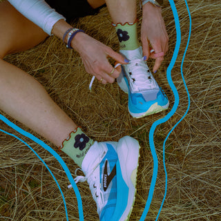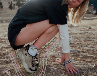 Voltage LTD and mountain runner Courtney Coppinger come together on the KOM Sock—a bold, high-energy design that fuses peak performance with creative, trail-driven expression.
